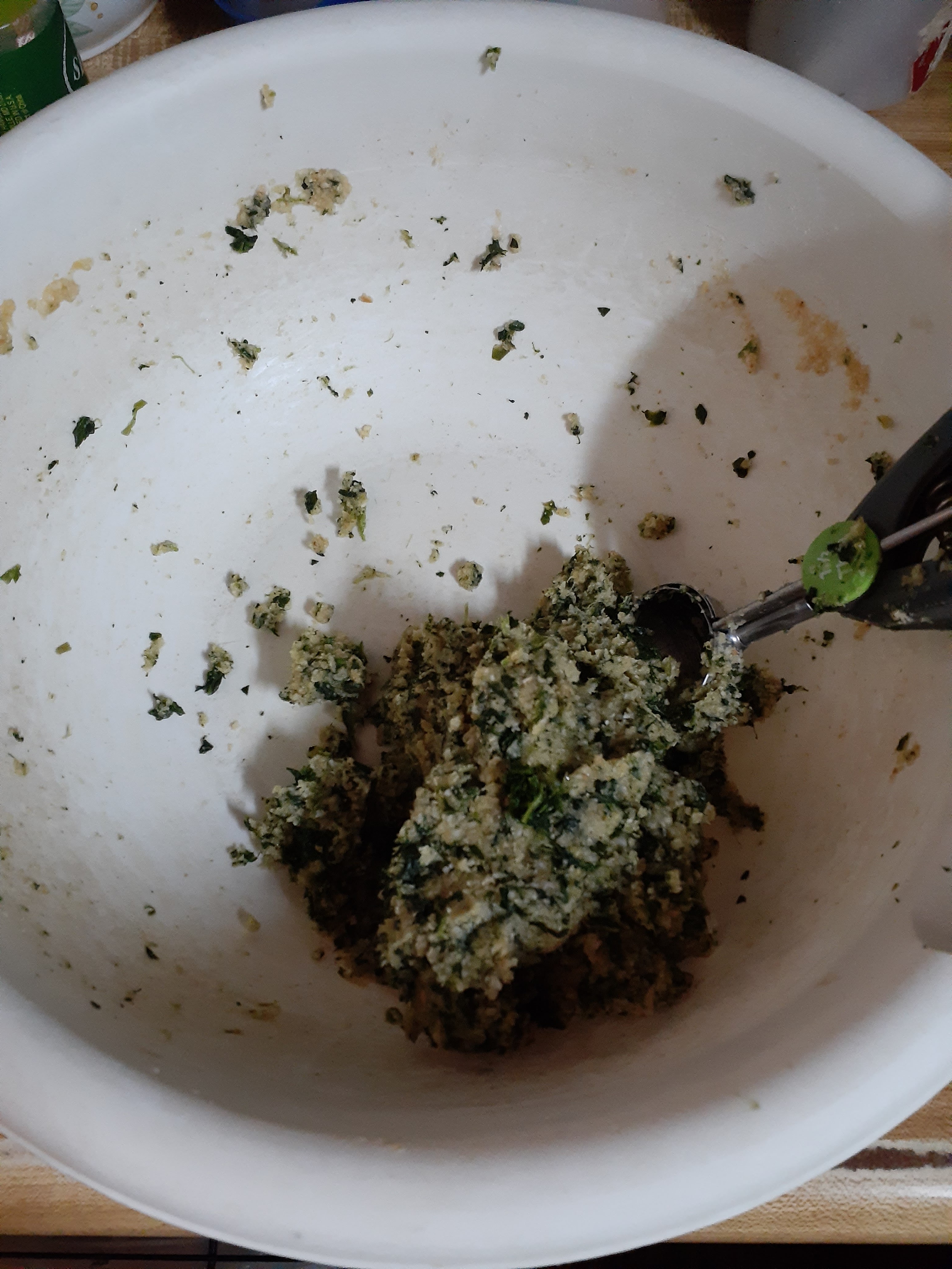 1 & 1/2 c. Seasoned BreadcrumbsCook spinach then drain and squeeze out moisture (Very important! Squeeze all the moisture out!)